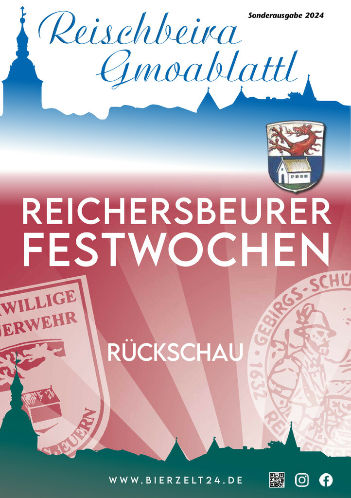Wir sagen DANKESCHÖN! Ohne viele fleißige und freiwillige Helfer und Helfe- rinnen wäre so ein besonderes Fest nicht möglich. Der Festausschuss sowie die Vorstände der Freiwilligen Feuerwehr sowie Gebirgsschützenkompanie bedan- ken sich daher sehr herzlich bei jedem, der mit einem Dienst oder sogar bei mehrfachen Aufgaben die Fest- wochen unterstützt haben und so zum Gelingen des Festes beigetragen haben: Ein Dank geht somit an dieser Stelle an alle akti- ven Mitglieder der beiden Vereine sowie alle anderen Freiwilligen, die sich auf unterschiedlichste Weise im Vorfeld, während der Festwoche oder auch hinterher eingebracht haben, wie z. B. bei der gesamten Orga- nisation, beim Zeltauf- und abbau, im Festbüro, in der Schenke bzw. im Weißbierkarussell, in der Essens- ausgabe bzw. Unterstützung beim Austragen an den Festsonntagen und bei der Zeltwache. Ein großes Danke auch an die Bedienungen, die Küche sowie an den Zeltbetreiber, an die Brauerei, an die jeweiligen Postenchefinnen und – chefs, an die Kaffee- und Weinbardamen, an die Kuchenbäckerinnen, an das Barpersonal, an die Dekorateure, an die Parkeinweiser, an den Toilettendienst, an die Musikerinnen und Musi- ker der Blaskapellen, an die Bands und Gruppen sowie allen anderen beteiligten Künstlerinnen und Künstler, an die Tontechnik, an die Organisatoren und vielen jun- gen Helferinnen und Helfer des Kinderspielbereichs, an die beiden Pfarrer, an die Mesnerinnen, an die Minist- rantinnen und Ministranten sowie an die Lektoren, an alle Rednerinnen und Redner an den Festsonntagen, an die Kranzbinderinnen, an die Verkäuferinnen und Verkäufer von Festzeichen, an den Logo-Designer und Werbematerialersteller, an die Fotografinnen und Fo- tografen, an die Social Media Beauftragten und an die Presseredakteure, an die Beteiligten der Dreharbeiten zum Trailer, an die anderen Ortsvereine fürs Ausrücken und Unterstützen zur gegebenen Zeit, an die eingela- denen Vereine für die gute Beteiligung, an die Ortsbe- wohner fürs Beflaggen sowie an die Grundstücksei- gentümer des Festplatzes und der Parkflächen, an die Sonderausgabe zur Rückschau Firma Harrer fürs Herrichten der Flächen und an den Bürgermeister bzw. Gemeinderäte mit dem ganzen Personal der Gemeindeverwaltung Reichersbeuern, insbesondere an die Mitarbeiter vom Bauhof. Nicht zu vergessen ist der Dank an alle Sponsoren und monetären Unterstützer der Vereine – auch vor und nach dem Bierzelt. Ein letztes Dankeschön geht auch an alle Reichersbe- urer fürs passive und vor allem aktive Mitfeiern der Reichersbeurer Festwochen, denn ohne eure Toleranz (für die nächtliche musikalische Beschallung) und vor allem eure Besuche und kräftiges Mitfeiern wäre so eine Festwoche nur halb so schön 66 Impressum Herausgeber: Gemeinde Reichersbeuern Tölzer Straße 12, 83677 Reichersbeuern Telefon 0 80 41 / 78 22-0, E-Mail: info@vgreichersbeuern.de V.i.S.d.P.: Bürgermeister Ernst Dieckmann CvD u. Redakteurin: Martina Geisberger Texte: Fotografen: Martina Geisberger Marie-Christin Weiß, Tom Winkler, Martina Geisberger, Hias Krinner, Tom Eiler, Hyunju Oh-Strauss, Flori Merz, Sefa Heimgreiter Titelbild: Florian Merz Gestaltung, Layout, Druck und Anzeigenannahme: h&m Druck GmbH Gruber Straße 8, 83626 Kreuzstraße/Valley Tel. 0 80 24 / 4 75 32-0 | E-Mail: info@hm-digi.de Auflage: Verteilung: 1.150 Stück Kostenlos an alle Haushalte im Bereich der Gemeinde Reichersbeuern Für Textinhalte und deren Richtigkeit sind die Vereine und Autoren verantwortlich. 23