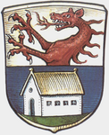 Das Wappen zeigt in einem geteilten Schild oben in Gold einen roten Panther, unten in Blau auf grünem Boden ein silbernes Haus mit goldenem Dach. Die Gestaltung des Wappens führt in die Zeit der Ortsgründung zurück und wurde auf einen Entwurf von Professor Hupp, Schleißheim ausgefertigt. Verliehen wurde das Wappen der Gemeinde im Jahre 1937.