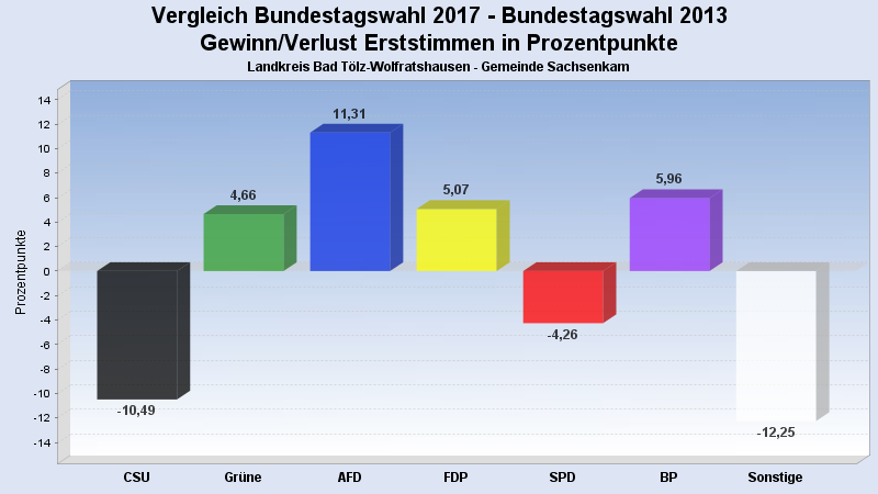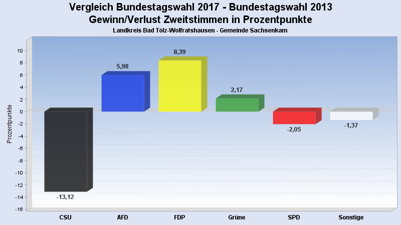 | Partei | Zweitstimmen 2017 | Prozent 2017 | Zweitstimmen 2013 | Prozent 2013 | |